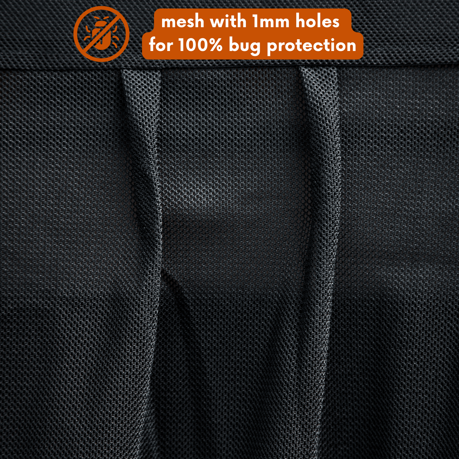 1) Because people usually need much less in-and-out access from the back door, our rear door screens are closed by zippers to provide a complete seal.