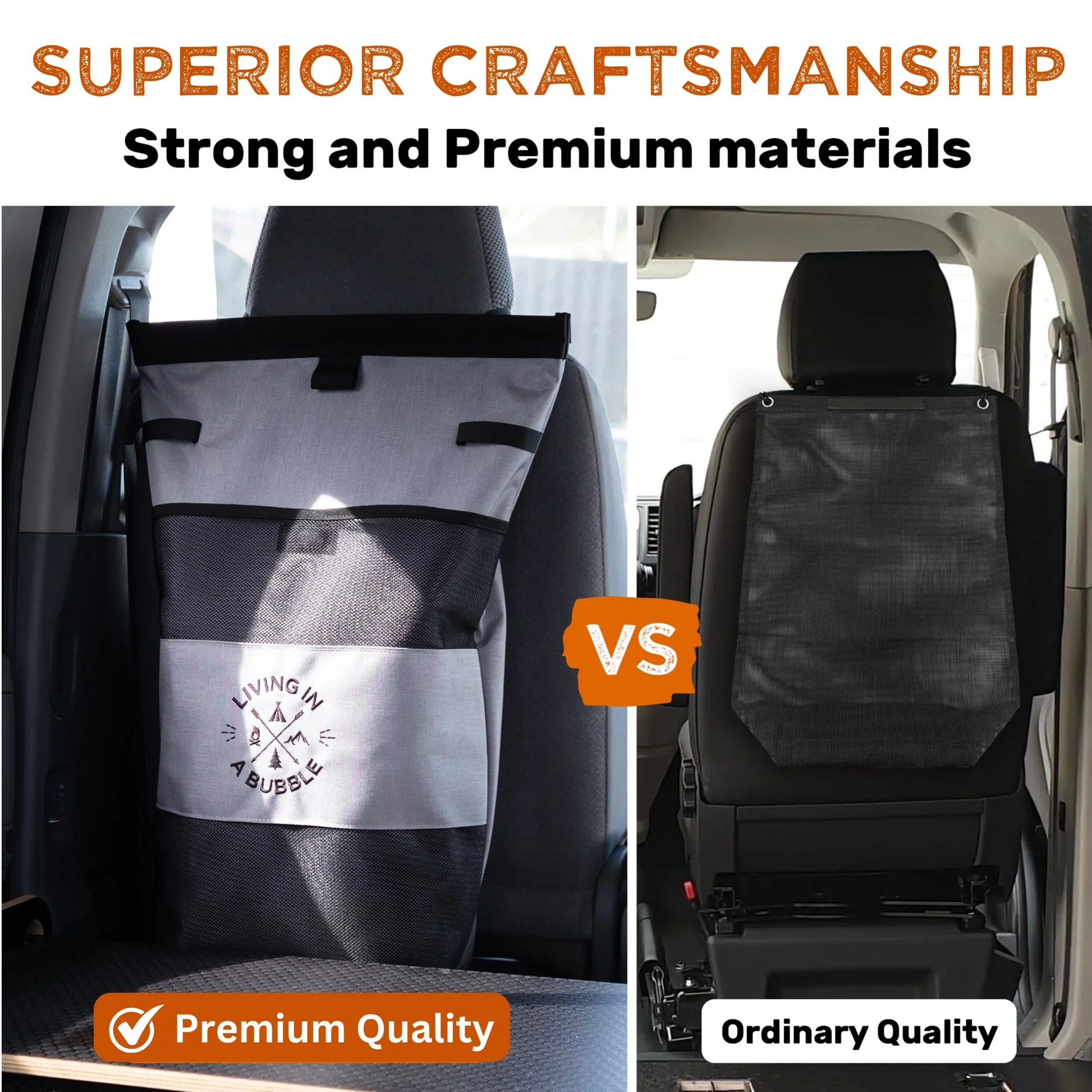 Odor-Free Living: This seat back storage bag has magnetic snapback closure to keep your space odor-free by securely containing items. A vital feature for vanlifers who live in close quarters and need to maintain a fresh environment.